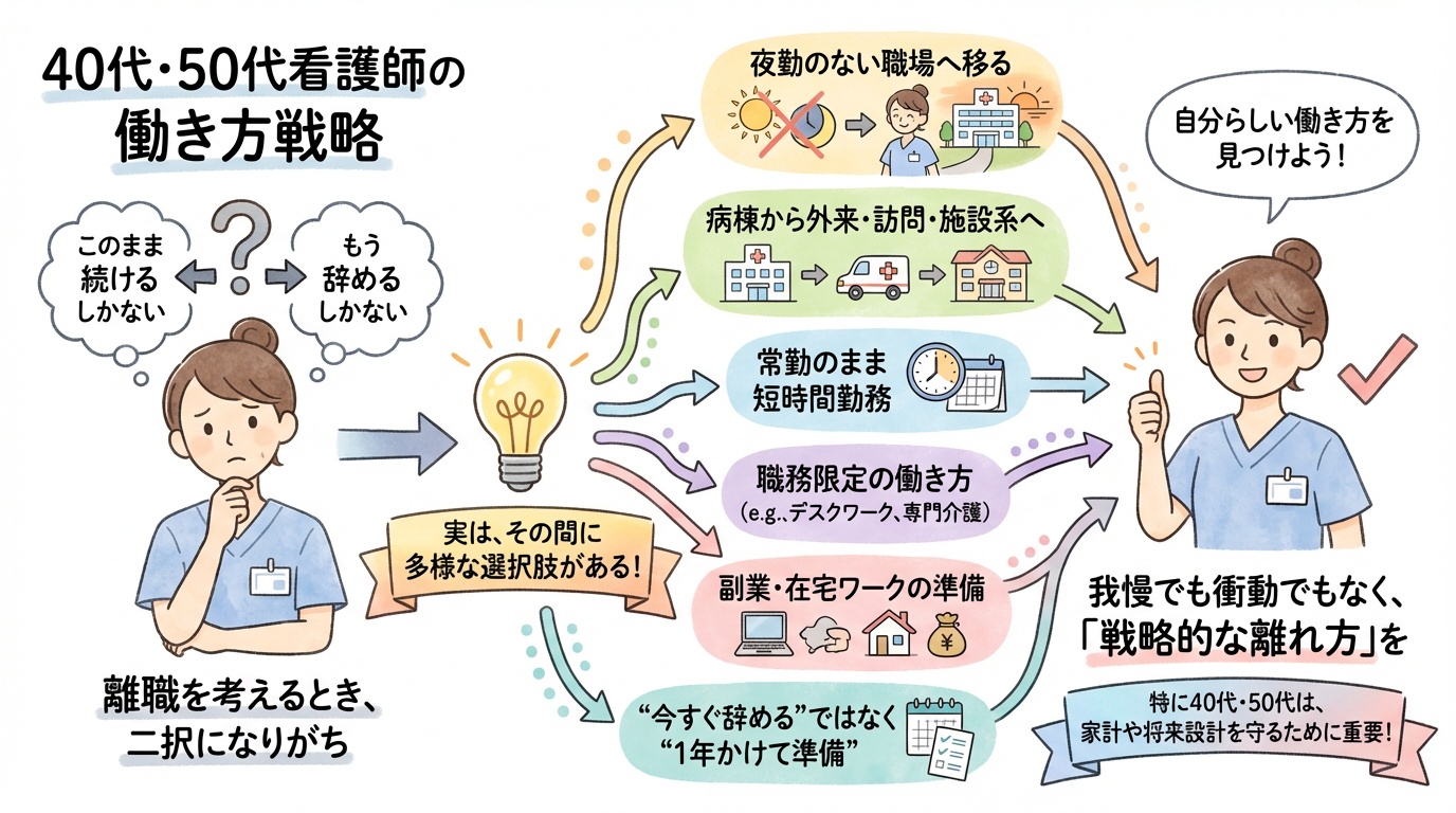 40代・50代からでも、看護師の経験を活かせる道はひとつではありません。