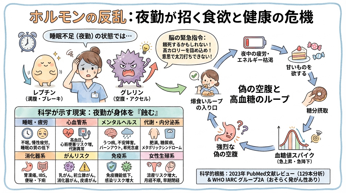 「夜勤を始めてから、明らかに太りやすくなった。食べてないはずなのに……」
