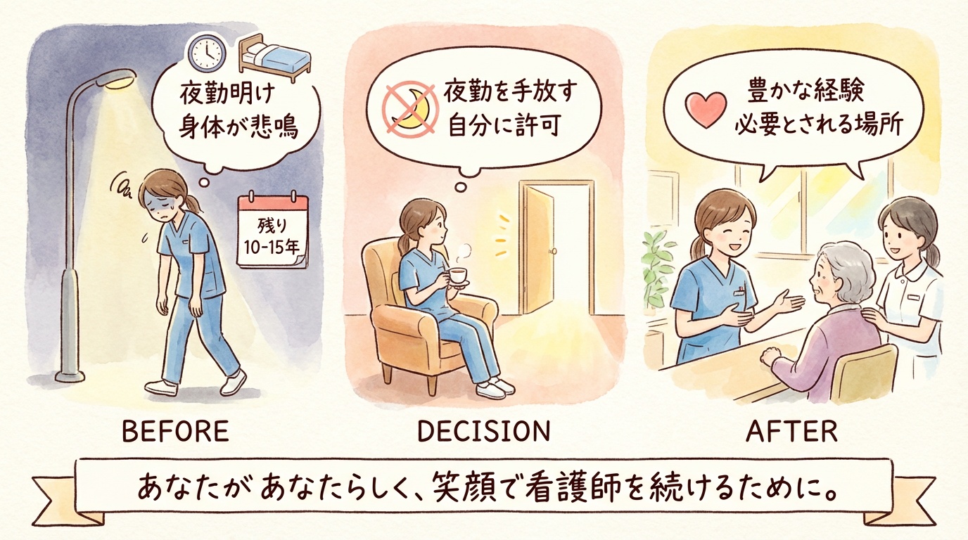 まずは「夜勤を手放す」という選択肢を、自分に許してあげてください。